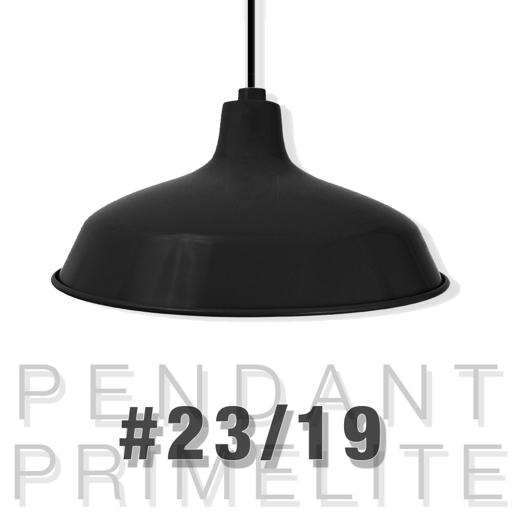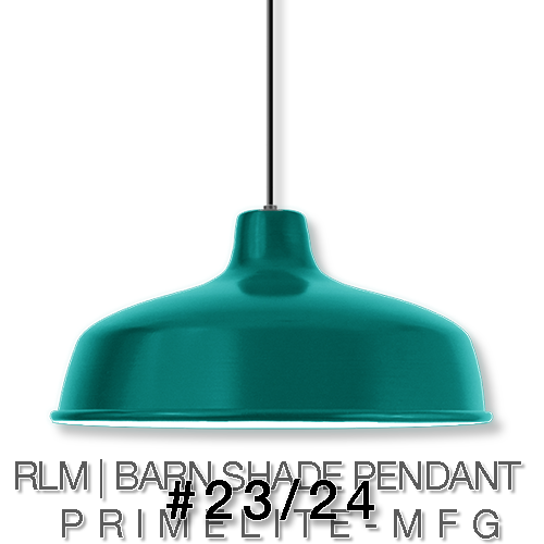 Description: 7″-24″ aluminum RLM barn pendant on 10′ cord. Stem, chain, and longer lengths of cord are available. UL listed damp location.