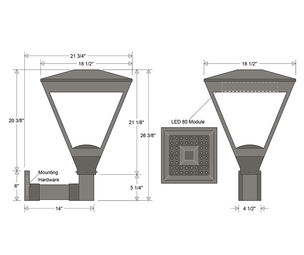With a single socket capable of supporting 150-200 watts for incandescent or LED bulbs, they cater to varied lighting needs. Made in the USA, they are crafted from durable all-aluminum, ensuring longevity and resilience.